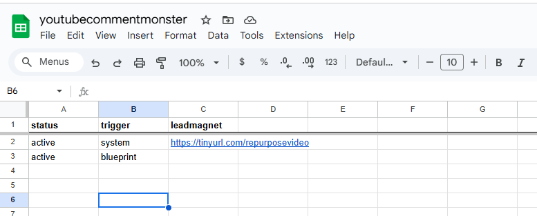 It starts off by watching the comments on your YouTube channel, and then it looks through your spreadsheet to bring in your fulfillment links. You can set up your spreadsheet with all the fulfillment links that you want.