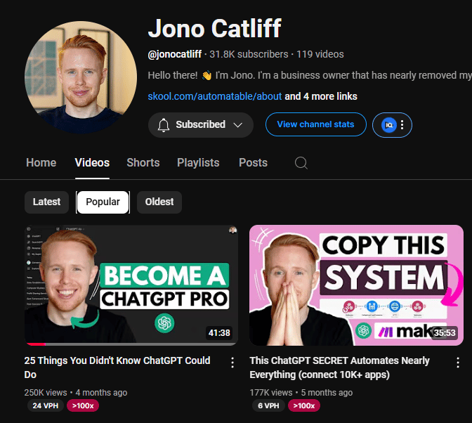 I’ll visit these channels, go back to their oldest videos, and start scrolling forward. I’ll pay close attention to the videos that have the most views.