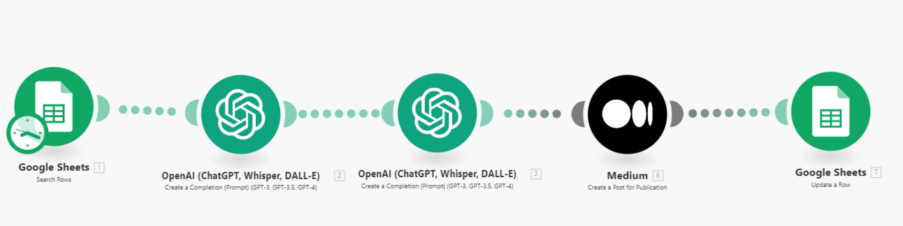Using a combination of Google Sheets, customized GPT prompts and MAKE automations, I managed to cut down the time spent on each article from four hours to less than 20 minutes.