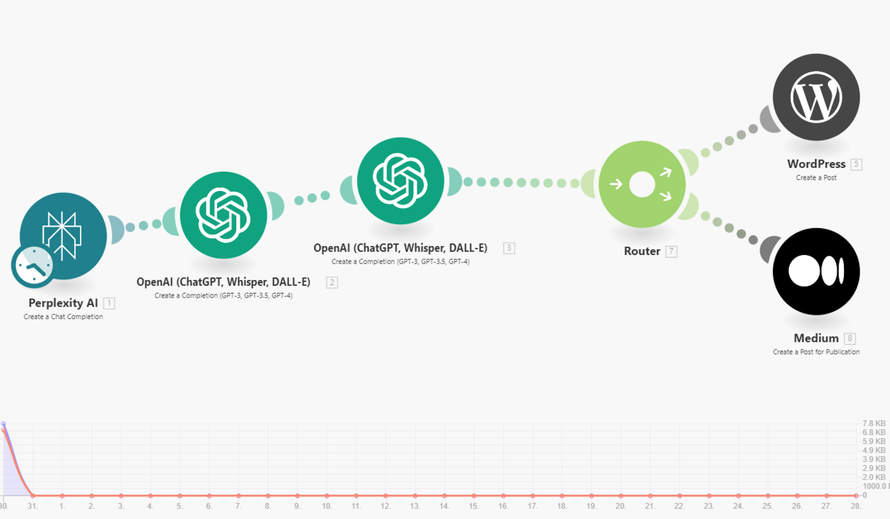 What I did is I used Perplexity AI and Chat GPT along with an automation in make.com to create an article that went out to Medium and WordPress.