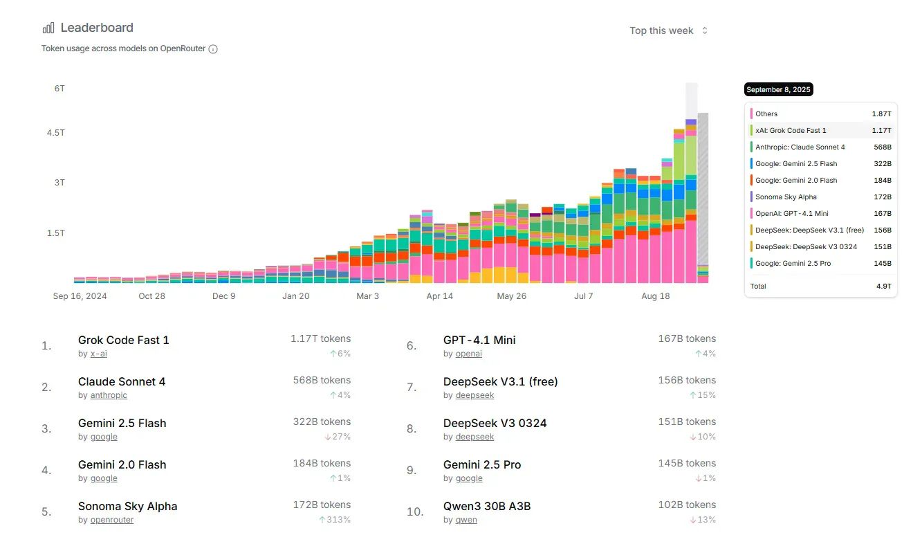 The September 2025 OpenRouter data tells a completely different story than what you'll read in most AI newsletters. With 4.9 trillion tokens processed across the platform, this represents one of the largest real-world usage datasets available—and the results are surprising.
