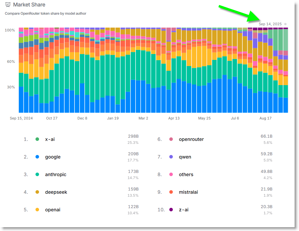I've been tracking AI model performance and adoption patterns, and I recently dove deep into the September 2025 OpenRouter leaderboard data—a treasure trove that reveals what's actually happening beneath all the marketing noise.
