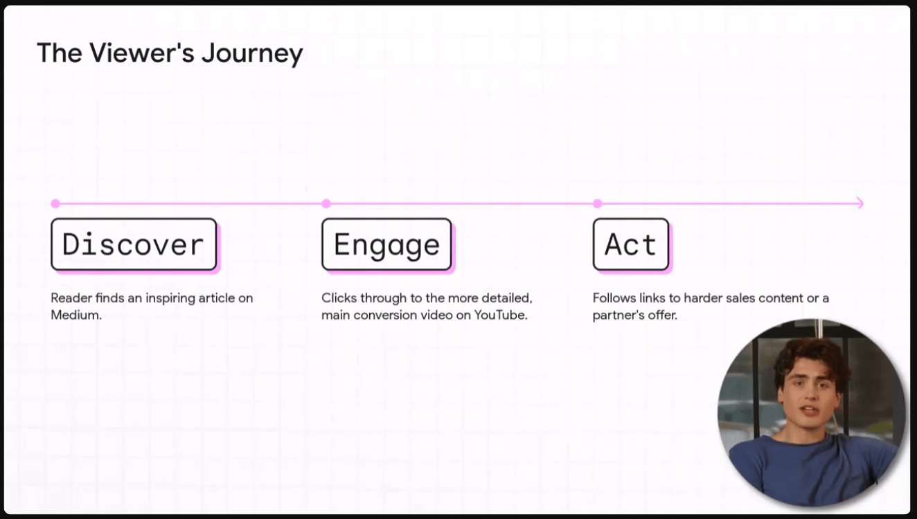 ➝ They're intrigued, so they move to engage by clicking a link to your more in-depth YouTube video.
