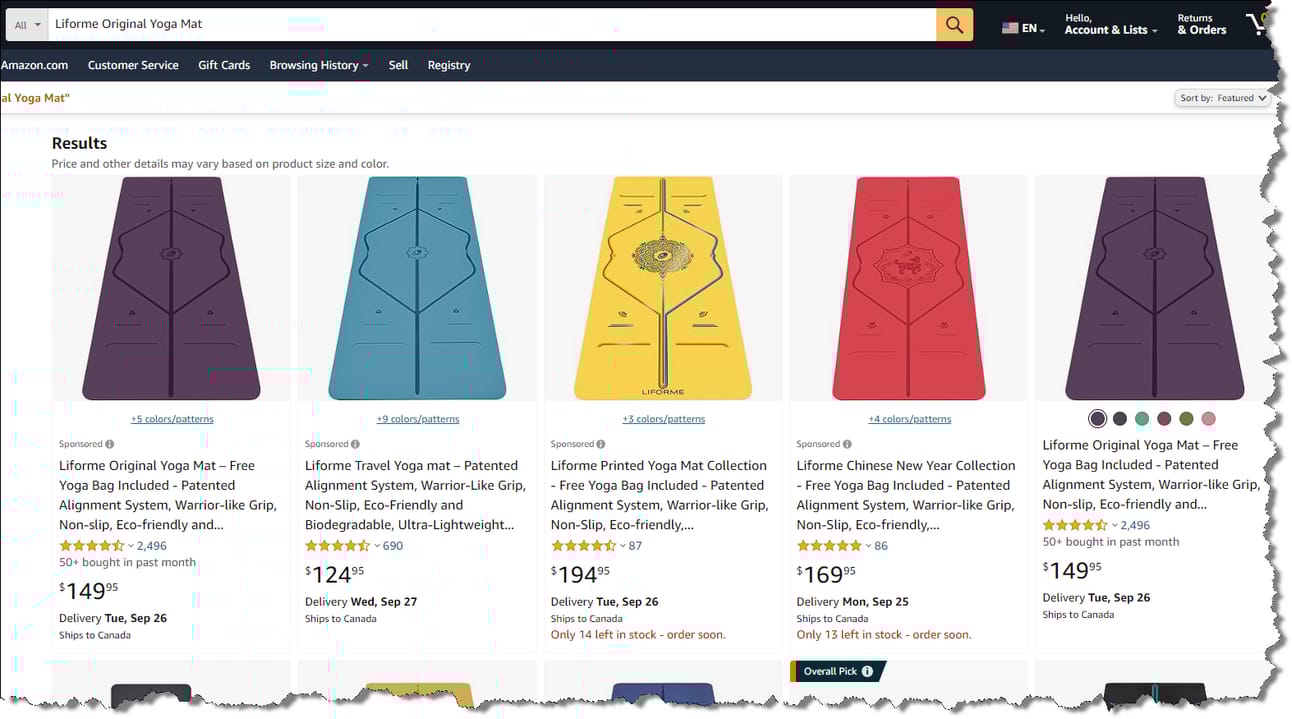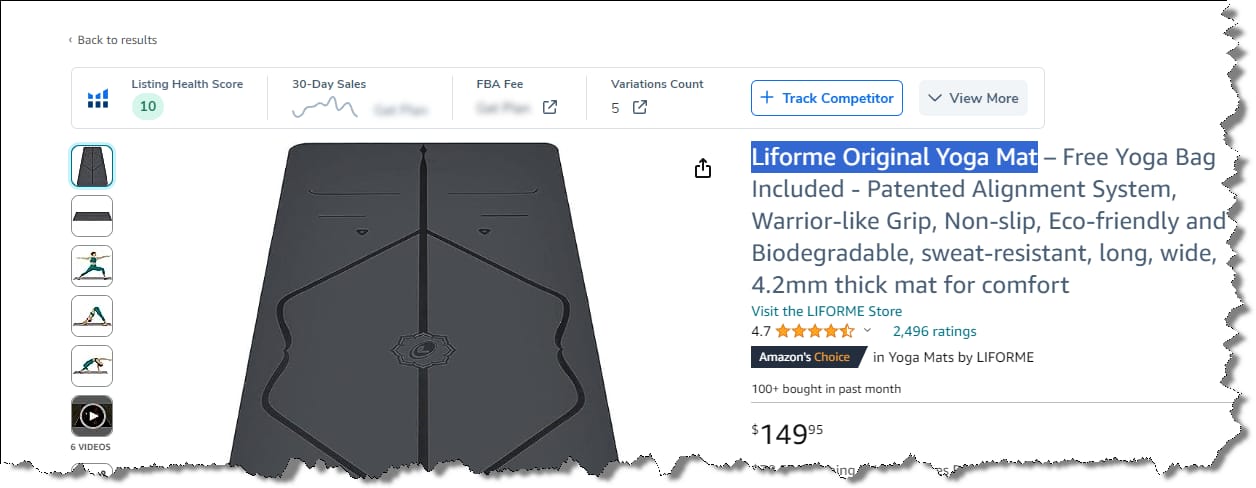 Researching Yoga Mat product listings on Amazon (image by author)