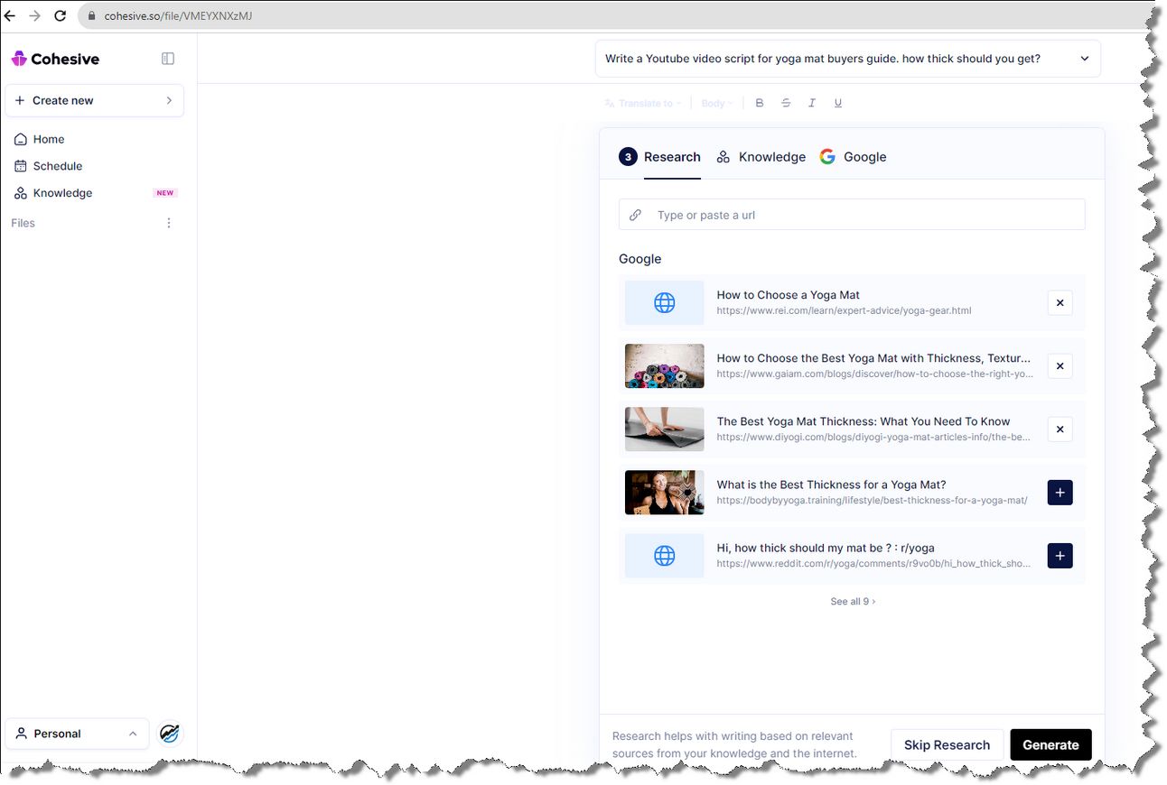 With Cohesive AI research from the best YouTube video transcripts, we need to get more specific because this YouTube script does not help me select the best selling Yoga Mats on Amazon.