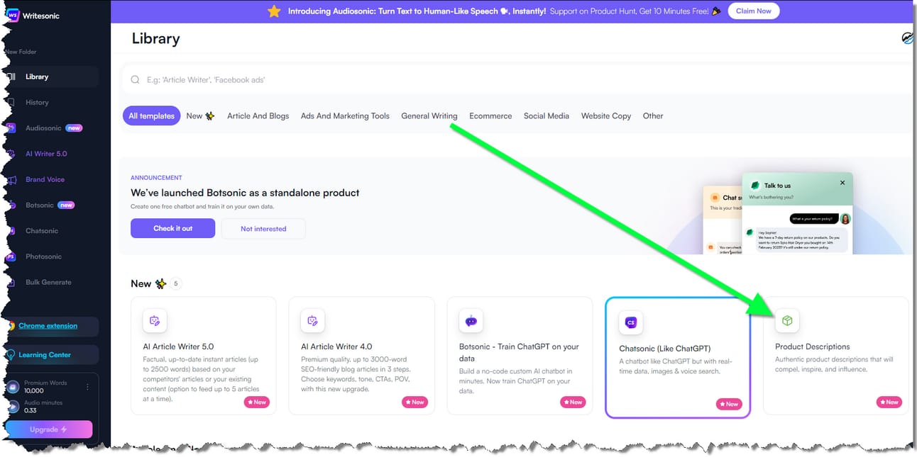 Writesonic has amazing new AI tools for writers and podcasters! But lets get to the writesonic ai for product descriptions.