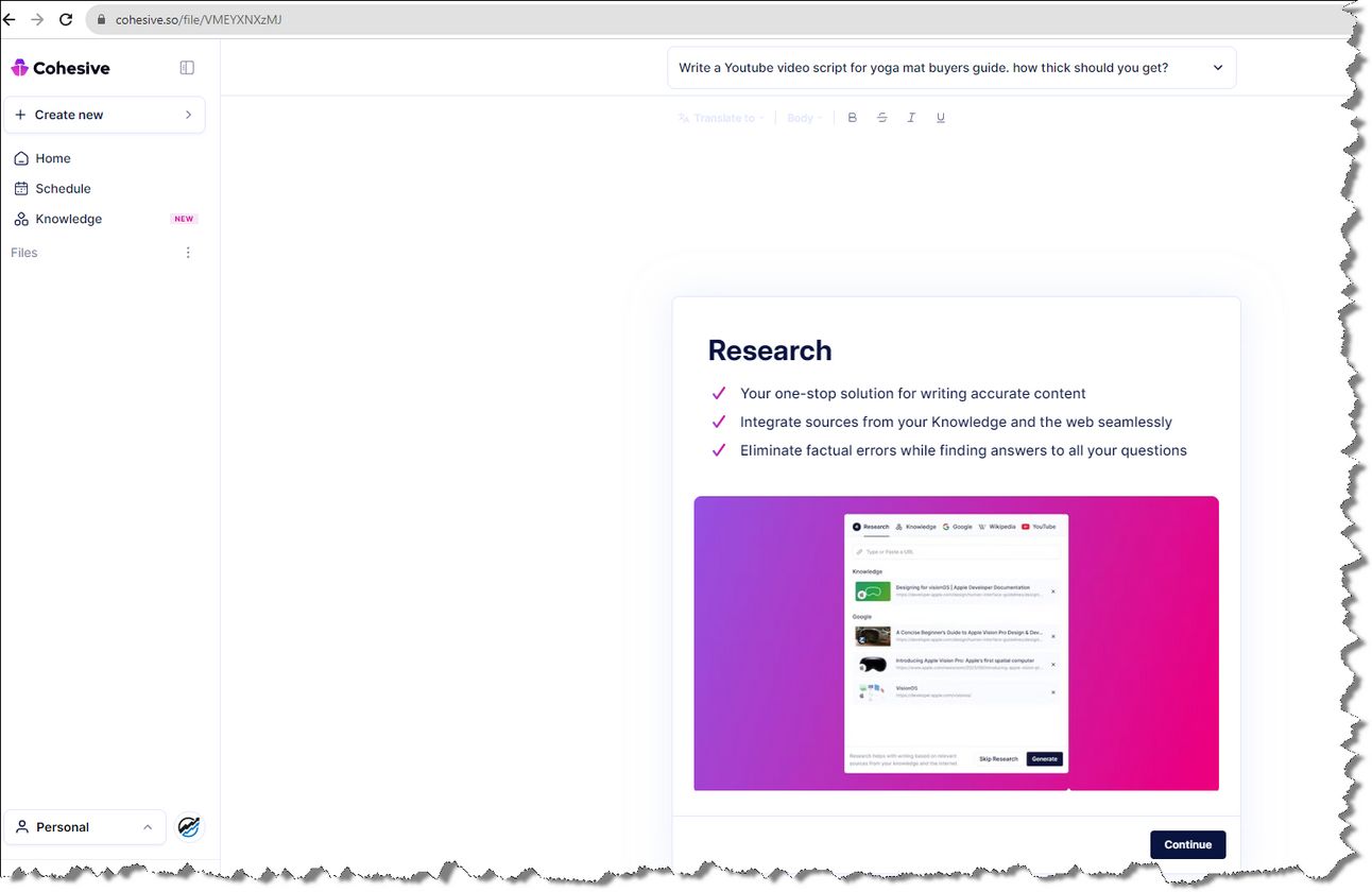 First I’m starting with Cohesive AI writing and research tool.